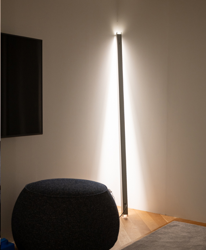 部屋の隅にスタンドライトを配し、あえて壁を照らしてみる。反射した柔らかな光が壁面に広がることで、空間には奥行きを、心には静かな余白をもたらしてくれる。