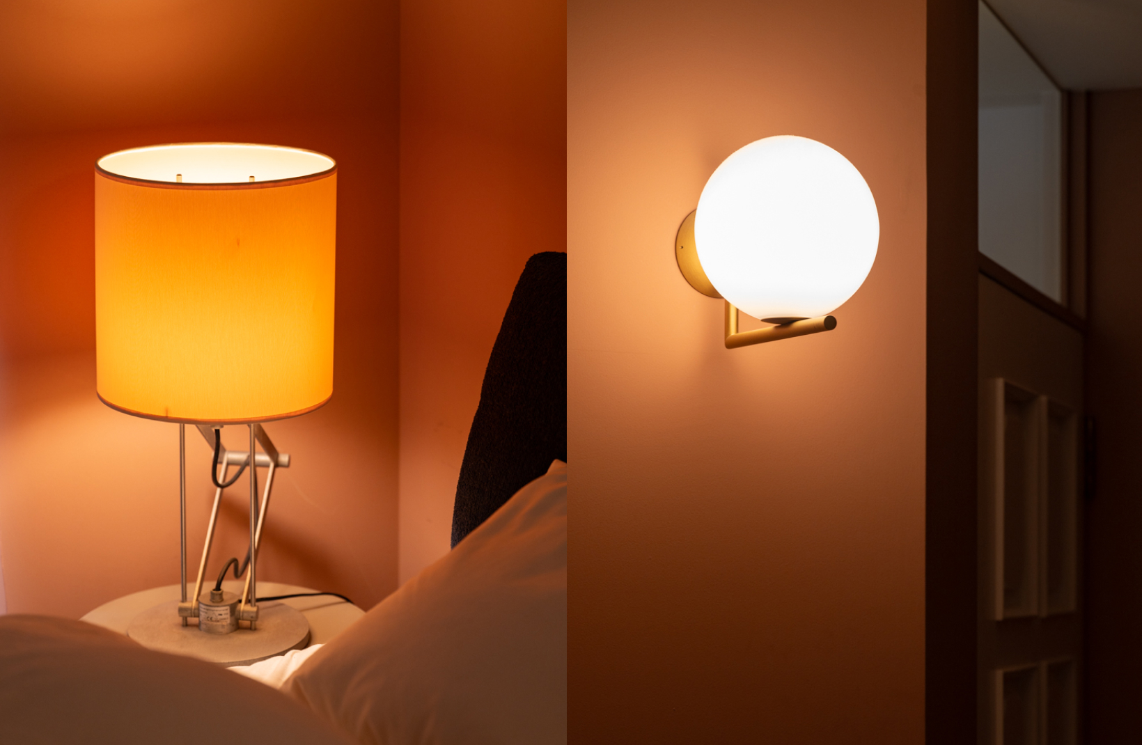 部屋の隅にスタンドライトを配し、あえて壁を照らしてみる。反射した柔らかな光が壁面に広がることで、空間には奥行きを、心には静かな余白をもたらしてくれる。