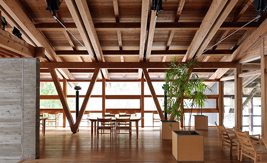 ここ梼原町に来て、隈さんの建築を見学して、根本は同じだと感じました。梼原町はもともと林業の町であり、その主産物は杉とひのきです。さらにこの町では林業の一歩先を行っており、木材ペレットを使用したバイオマス発電、それに風力発電も行っており、町で使用する電力は自らまかなっていると聞きました。そういった街の人達の暮らし方や考え方。そして高知県という南国ながら、冬には雪深くなる気候。それらを踏まえてデザインされた結果、サステナブル、と世界的に評価される建築が完成したのだと感じました。建築は出来上がったあと町の人々に利用されてこそ、生きるのですから」