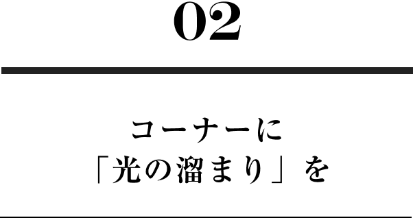 部屋の隅にスタンドライトを配し、あえて壁を照らしてみる。反射した柔らかな光が壁面に広がることで、空間には奥行きを、心には静かな余白をもたらしてくれる。