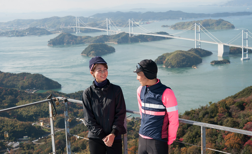 自転車で渡ると総走行距離は75kmほどだが、橋梁の高さが70m以上あり、またアップダウンが多い島の中をライドするので疲労しやすく、初心者は意外に時間がかかる。初心者の場合、1泊2日でゆるりと走るのがオススメだ。