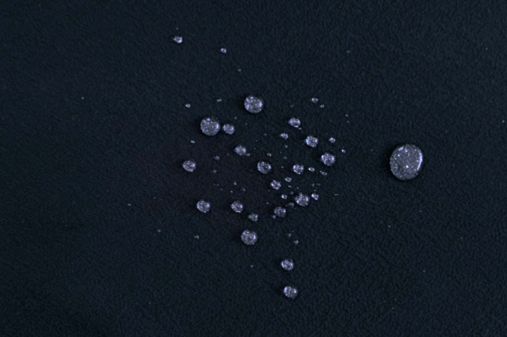 深黒加工によって生地はよりしなやかに、色落ちせず、驚くような撥水加工が施される。